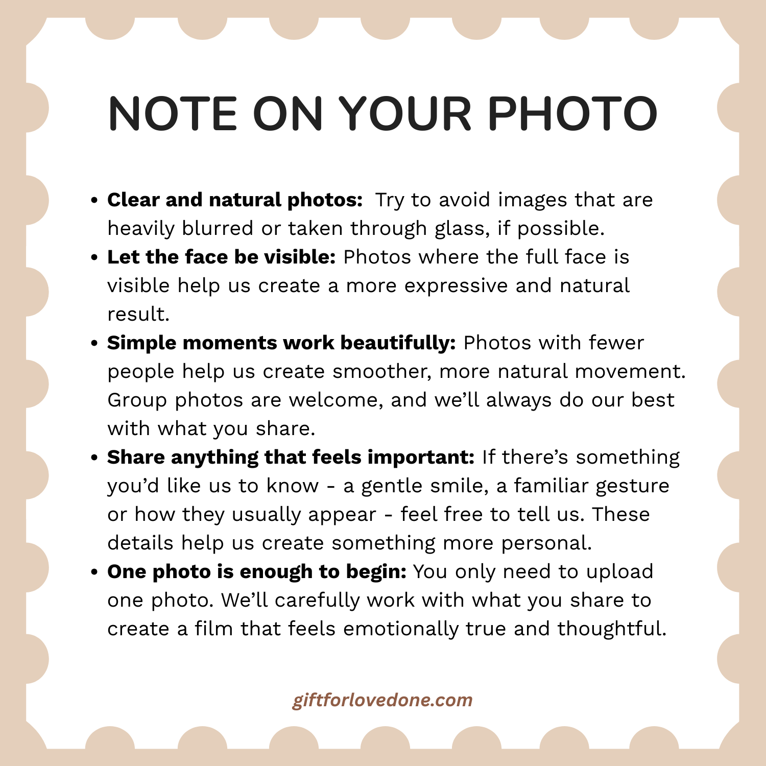 At Gift For Loved One, the photos you share are more than digital files. They represent real people and real moments, and we treat them with the utmost care and respect.