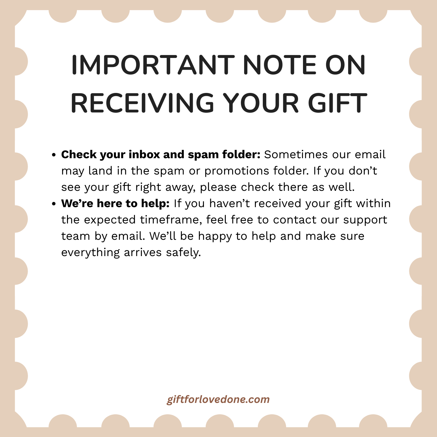 If you’re unsure what to write, you can simply tell us who the gift is for - for example, your mother, your father, or both. We’ll help shape a message for you with care.