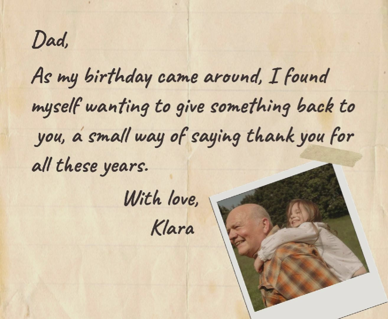 Created from a meaningful photo and your own words, this film is a heartfelt thank-you to your parents, given on your birthday or whenever the moment feels right.